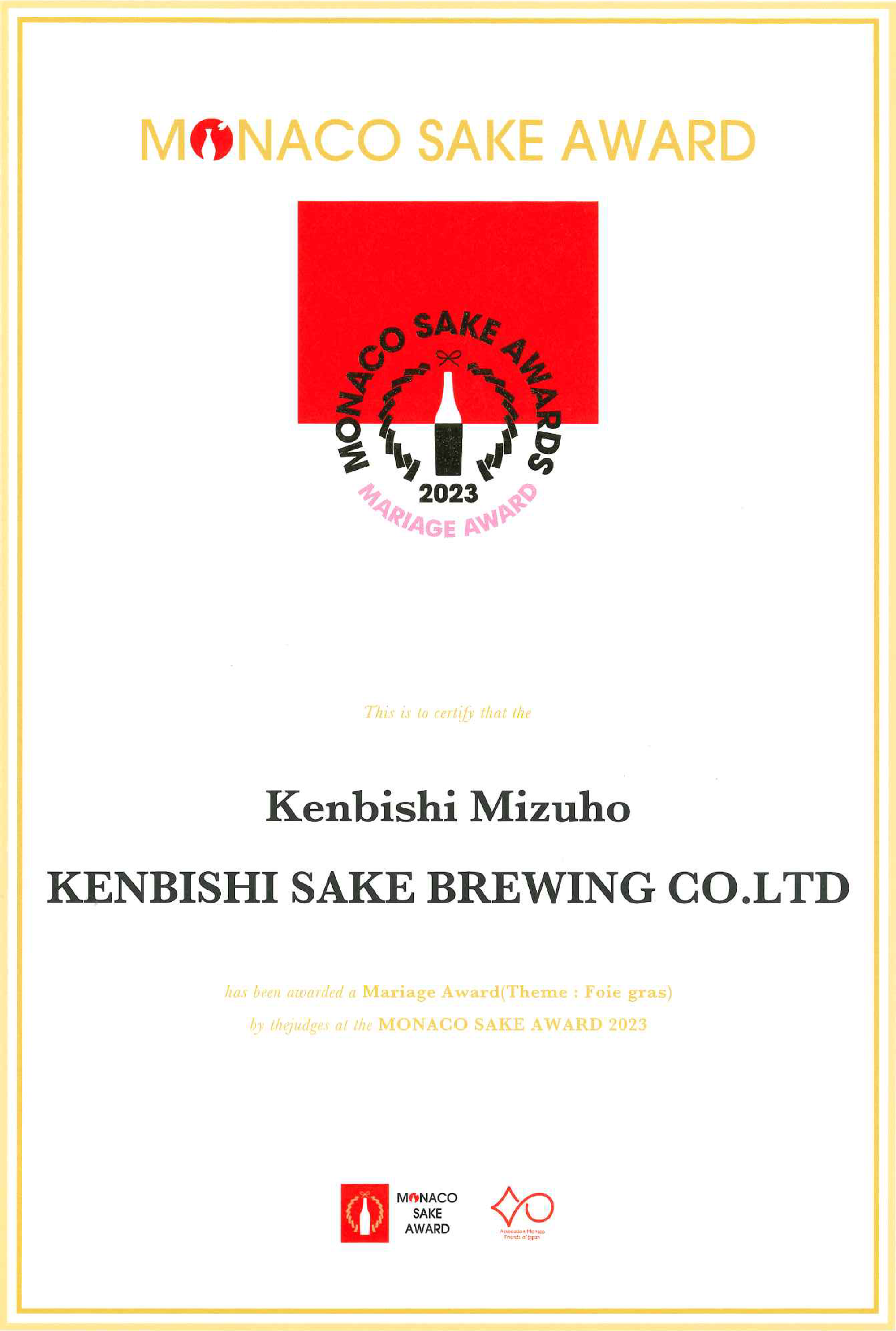 At the “MONACO SAKE AWARD 2023” judging meeting held on October 19, 2023, [KENBISHI MIZUHO] won the Marriage Award. The theme of the marriage was foie gras.